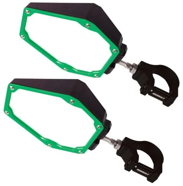 This Kit Includes:(1) Assault Industries Black/Green Bomber Plastic Mirrors (Pair) [101005SM03041] (2) Assault Industries Black Billet 1.5″ Clamp [CLMP-U-M10-1.5]