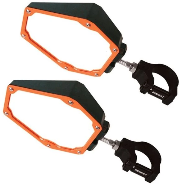 This Kit Includes:(1) Assault Industries Black/Orange Bomber Plastic Mirrors (Pair) [101005SM03071] (2) Assault Industries Black Billet 2.0″ Clamp [CLMP-U-M10-2.0]