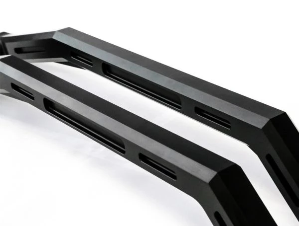 Fitment: (2013-2017) Polaris RZR XP 1000, (2013-2017) RZR XP 4 1000, (2016-2017) RZR XP Turbo, (2016-2017) RZR XP 4 Turbo. NOTE: Will not work with oem rear bumper. Are you a hardcore rock crawler or do you see yourself as a true trailblazer? If so, you definitely could use some heavy duty radius rods for your Polaris RZR XP 1000 or RZR XP Turbo. With the High Clearance Billet Radius Rods from Assault Industries, you get the strength and ground clearance you need for those extreme rides. Made from CNC’d T6 6061 aerospace billet aluminum and Chromoly steel heim joints, these rear radius rods are three times stronger than OEM radius rods. The hard anodized matte finish is incredibly durable and can take all the abuse from branches and debris. Don’t let a rock throw a wrench in your plans with this American Made product that Assault Industries is proud to stand behind! Features: Includes Pair of Upper and Lower Rear Radius Rods, CNC Machined from T6 6061 Aerospace Aluminum, 3 Times Stronger Than OEM Radius Rods, Self-Lubricating Seals, 4130 Hardened Chromoly Steel Heim Joints.