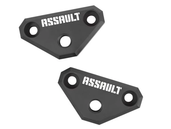 Fitment: Can-Am Maverick X3. Assault Industries M10 A-Pillar Mount Brackets make it possible to install any Assault Industries side mirror without using a clamp. The brackets make use of the OEM mirror mount holes on the Maverick X3 A-Pillar gusset plates. Mounting in this way enables the installer/end-user to run any of the available windshield kits on the market without the worry of whether or not it can be used with Assault Industries Mirrors. These simple brackets are CNC machined from aircraft grade 6061-T6 billet aluminum. We offer a raw aluminum finish for those interested in custom colors and also black anodized finish for a clean stealthy look. Both sets of brackets feature Assault-spec laser engraved markings and are made in the USA.