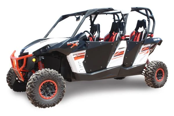 Fitment: (2012-2017) Can-Am Commander MAX, (2013-2017) Maverick MAX, (2013-2017) Maverick MAX X RS, (2017) Maverick MAX X RS Turbo, (2015-2016) Maverick MAX X DS, (2015-2016) Maverick MAX X DS Turbo, (2017) Maverick MAX X MR. The DragonFire HiBoy doors are not your typical fab shop doors with an aluminum skin cut-out to fit the frame; our doors have been specifically engineered for the 4 seat Maverick Max and Commander Max models. Everything from the mounting points, support braces, skin angles and latch setup coincides with the Can-Am so it looks like our doors came straight from the factory. Features: Hand welded in the USA, Suicide opening front doors & standard opening rear doors (sold in a complete set of 4), Slam-shut latches with built in locks, Removable doors with upper lock-down hinges, Rubberized tube backing and striker pin bushings for reduced trail noise, Inner frame support behind door skins, Integrated limiting straps on front doors (rears do not require limit straps), Solid frame anchored mounting points with built in adjustments, Matches angles/lines of OEM plastics, Pre-assembled for easy installation.