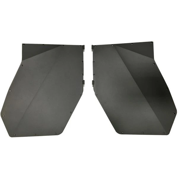 Fitment: Can-Am Defender MAX. RAGE Fab Defender Doors are a great accessory for any Can Am Defender owner. They are removable in seconds. They are rigid, strong and look great and finished with a wrinkle black powder coat. Heavy square tube frame with 18 gauge steel skin provides for strength and durability. This is a Must have for any Defender owner. You get both the safety and great looks. The clean, straight line follow the design and form of the Defender. The Defender’s roomy interior design provides ample room with doors in place. We make both our 2 and 4 doors set with the contoured skins. To order smooth skin, you will need to call and special order them, otherwise the default is the contoured skin. Includes all mounting hardware and installation instructions.