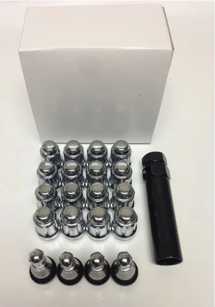 Includes (16) Beveled Chrome Lug Nuts, (4) Chrome Valve Stems and (1) Spline Key to install wheels on your machine. If you have any questions on what Lug Kit you need for your specific model call us so we can help you!