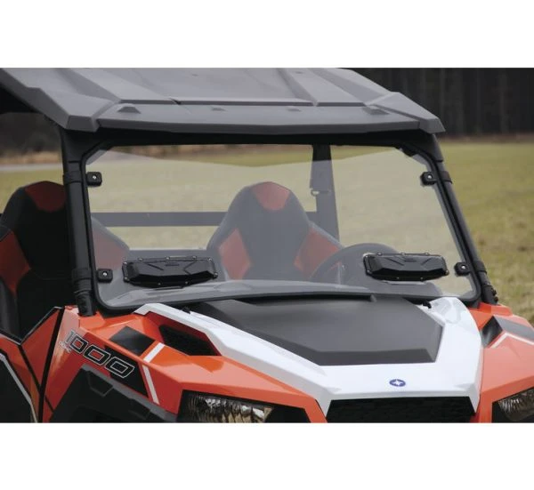 Fitment: (15-18) Polaris RZR 900, (15-18) RZR 4 900, (15-18) RZR 900 Trail, (15-18) RZR S 900, (16-18) RZR S 1000, (14-18) RZR XP 1000, (16-18) RZR XP 1000 Trail/Rock Edition, (16-18) RZR XP Turbo, (16-18) RZR XP 4 Turbo. The Versa-Vent Windshield comes equipped with two cleverly designed vents, which lets the driver and the passenger independently control the amount and direction of airflow. The scoop on the front gathers air off the hood and re-directs it inside the vehicle, so even at slow speeds there is a surprising amount of air that comes through the vent. Scratch-resistant 0.22 in. polycarbonate windshield with innovative vents made of super-durable, glass-filled nylon. Vents designed with built-in defogging feature and gasket sealed against water intrusion. Fully adjustable easy-to-use louvers allow for variable airflow, including a defog mode. When placed in defog mode, the vent directs outside air onto the inside surface of the windshield to prevent fogging