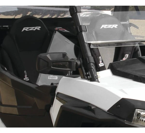 Designed specifically for Pursuit Mirrors and RZRs. Allows mirrors to be mounted with Polaris full windshields. Features: Works with Seizmik Universal Side View Mirrors, Seizmik Strike and Pursuit Mirrors, They can be used with any other windshield or no windshield at all to prevent clamps from scratching the roll cage.