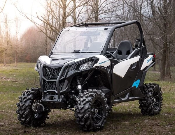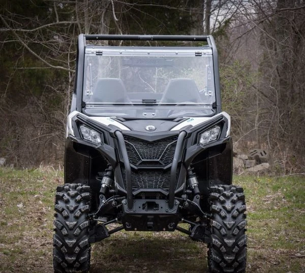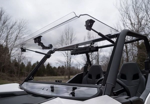 Fitment: (2018+) Can-Am Maverick Trail 800, (2018+) Maverick Trail 1000, (2018+) Maverick Trail 800 DPS, (2018+) Maverick Trail 1000 DPS, (2019+) Maverick Sport 1000, (2019+) Maverick Sport 1000 DPS, (2019+) Maverick Sport 1000R DPS. NOTE: Does not work with Can-Am side view mirrors. We know what it’s like to blaze through your favorite park on a Maverick Trail/Sport without a full windshield from SuperATV. That 50″ wide machine can take you down some pretty tight trails at ridiculous speeds. The thing about tight trails is the branches and bushes tend to try to hit you right in the face while you’re riding. Well, we can put an end to that for you. SuperATV’s Maverick Trail/Sport full windshield doesn’t just keep the brush out of your face; it’ll keep dirt, dust, sand, and your buddy’s rooster tail out of your teeth as well. Not to mention it’ll keep out the frost bite when it gets cold.