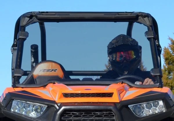 Fitment: (2015+) Polaris RZR 900, (2015+) RZR 4 900, (2015+) RZR S 900, (2015+) RZR XC 900, (2014+) RZR 1000, (2014+) RZR 4 1000 (2016+) RZR S 1000, (2016+) RZR XP Turbo. New full windshield is the best windshield on the market. We started with the strongest, thickest, most scratch resistant material. The industry leading 1/4″ thick AR Makrolon is much stronger than your average UTV windshield. The material is hard coated on both sides to provide scratch resistance for years of use. Manufactured in our facility in Madison, Indiana. Features: 1/4″ Makrolon AR abrasion resistant polycarbonate, Makrolon windshields are hard coated on both sides for extreme durability, Protects against chemical and UV attack, Contoured to hood with full length rubber seal for a great fit, Easy to install – comes with all necessary hardware and instructions, Can be used with soft or hard tops.